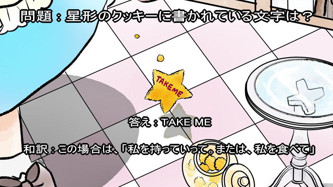 「《eat me》。『わたしをお食べなさい』か。