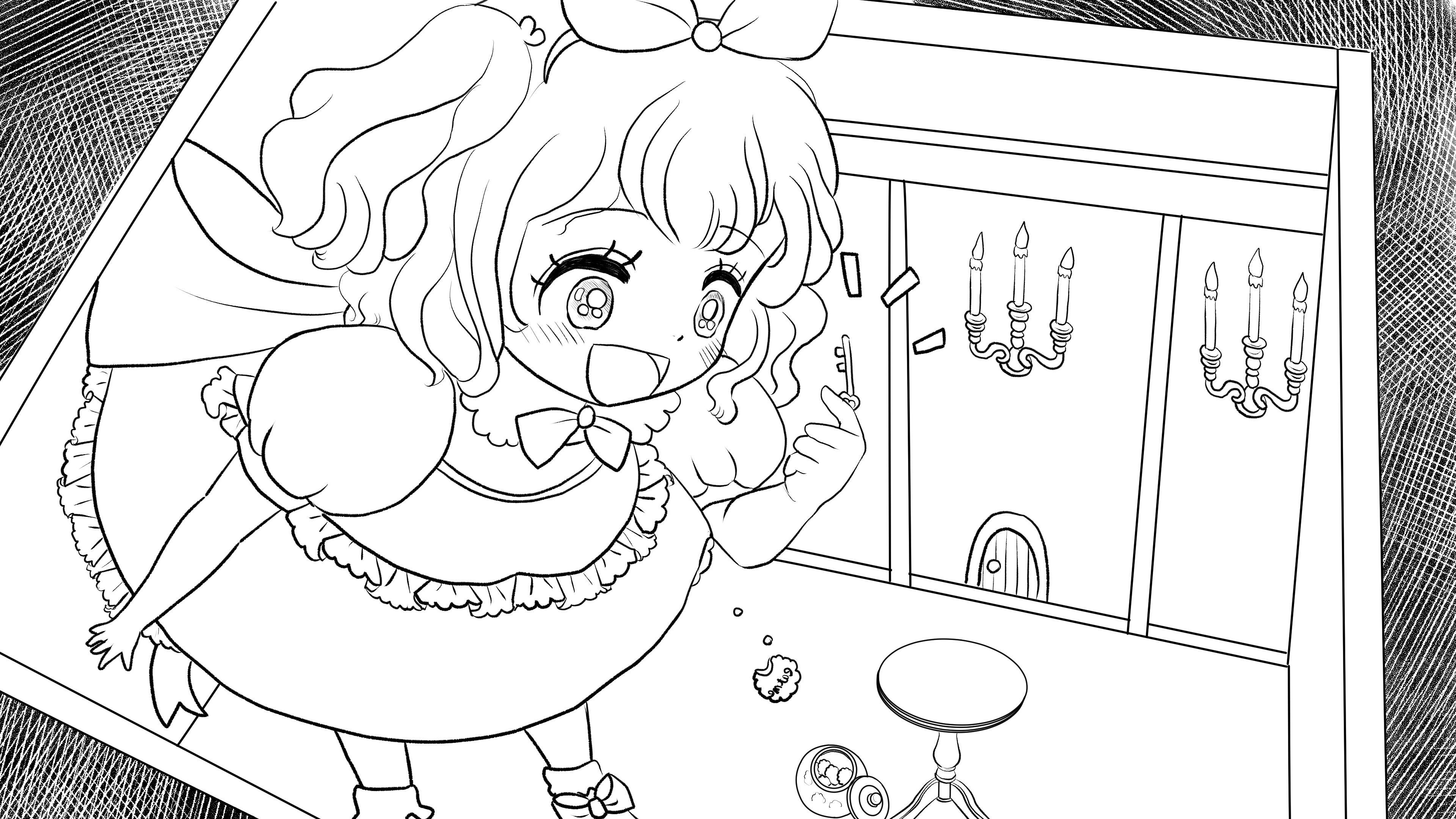 02 アタリイラストを元に3Dモデルを線画(5〜20分ほど)