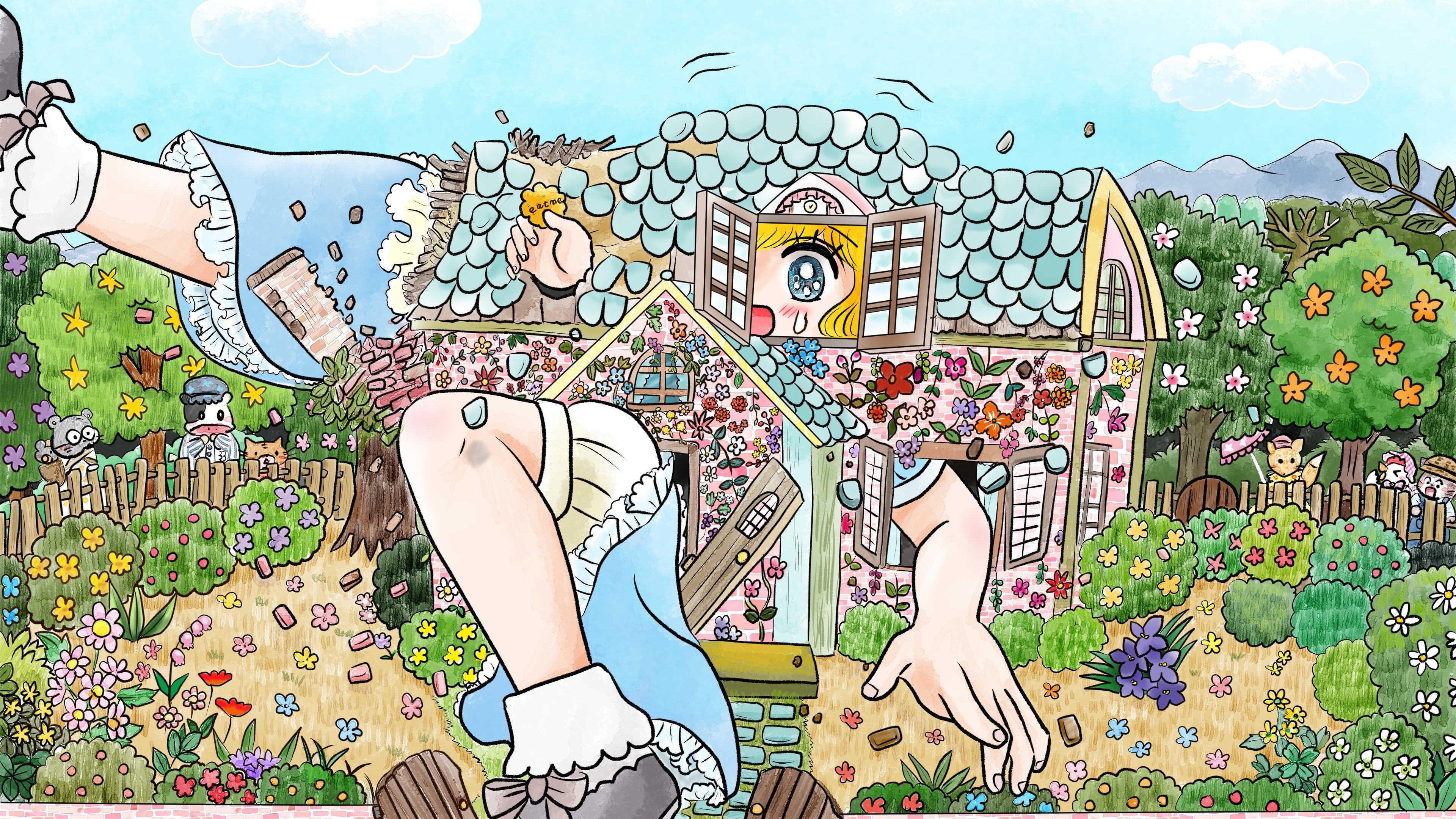 内側では大きくなったアリスのひじがドアを押しているので、いくら開けようとしてもびくともしません。