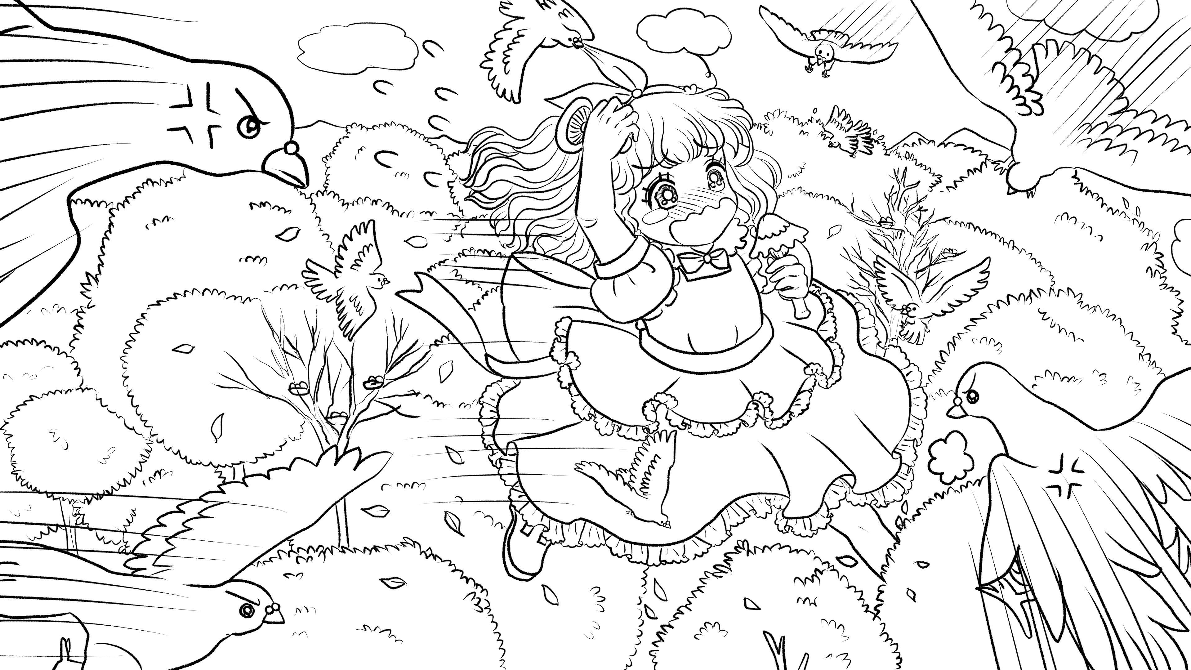 見てみるとそれはハトで、ハトはアリスの頭の周りを飛ぶと、アリスの頭や耳をくちばしで突きながら言いました。