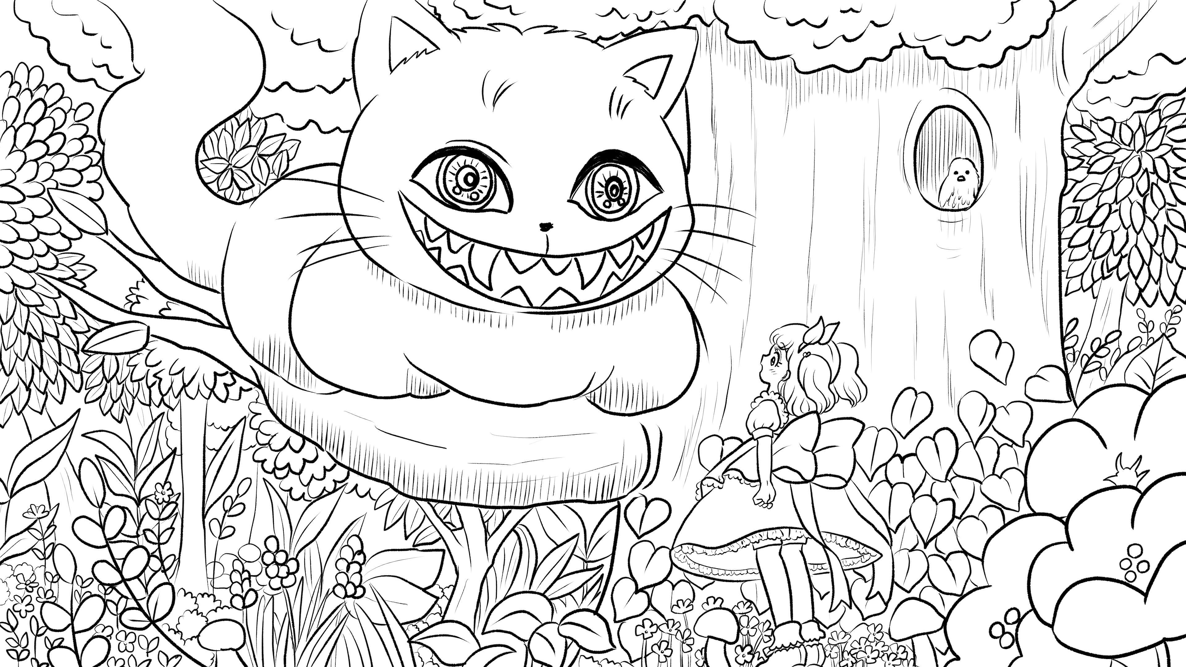 するとネコはアリスの方を向いて、大きな口を開けるとニヤリと笑いました。