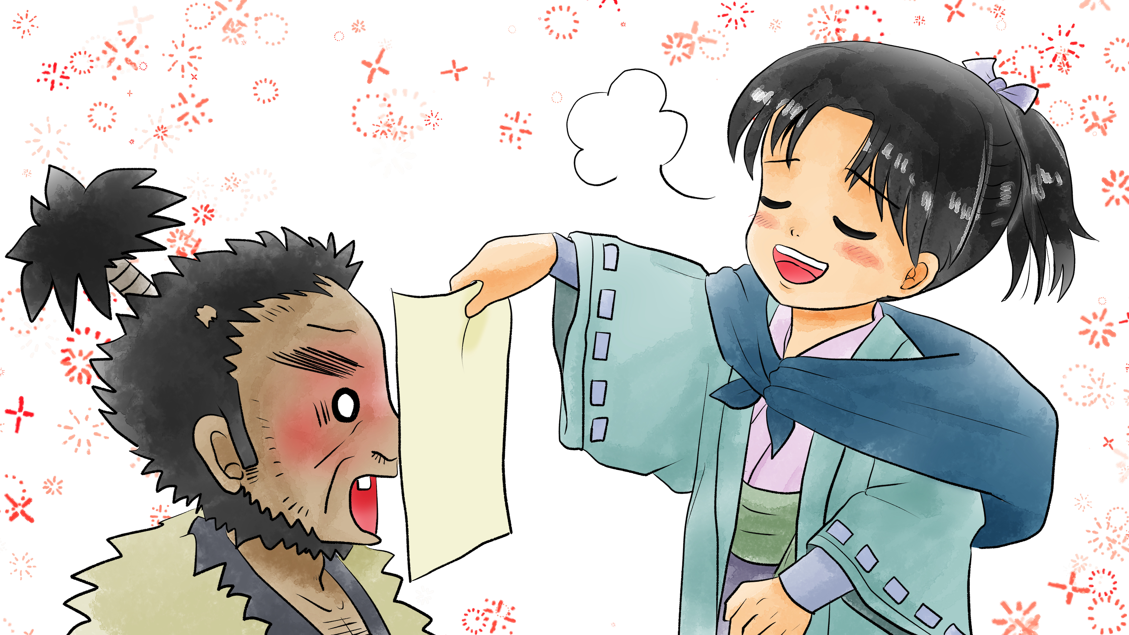 彦一はそう言うと、ふところから一枚の紙を取り出して、浪人の目の前に広げました。