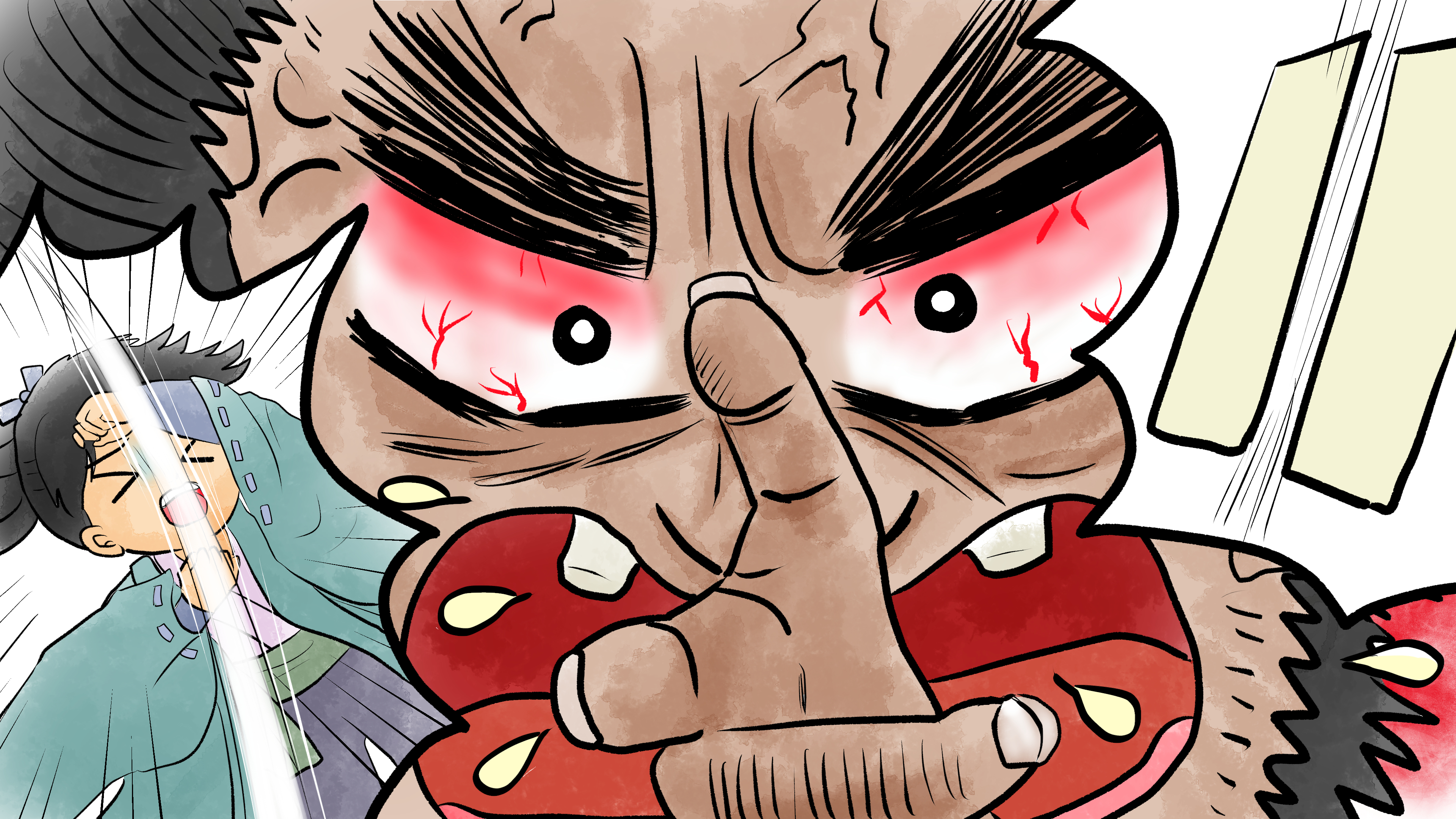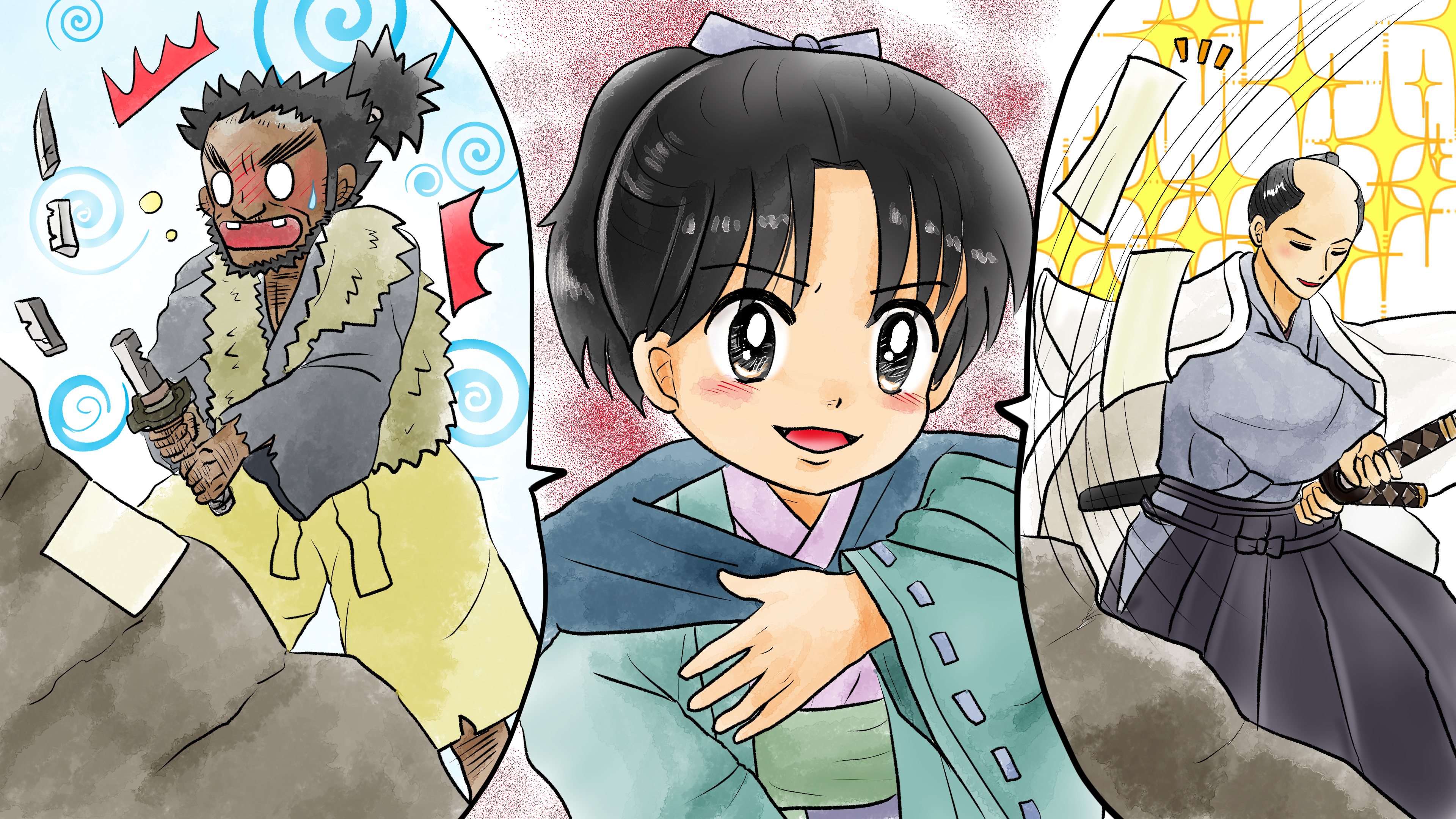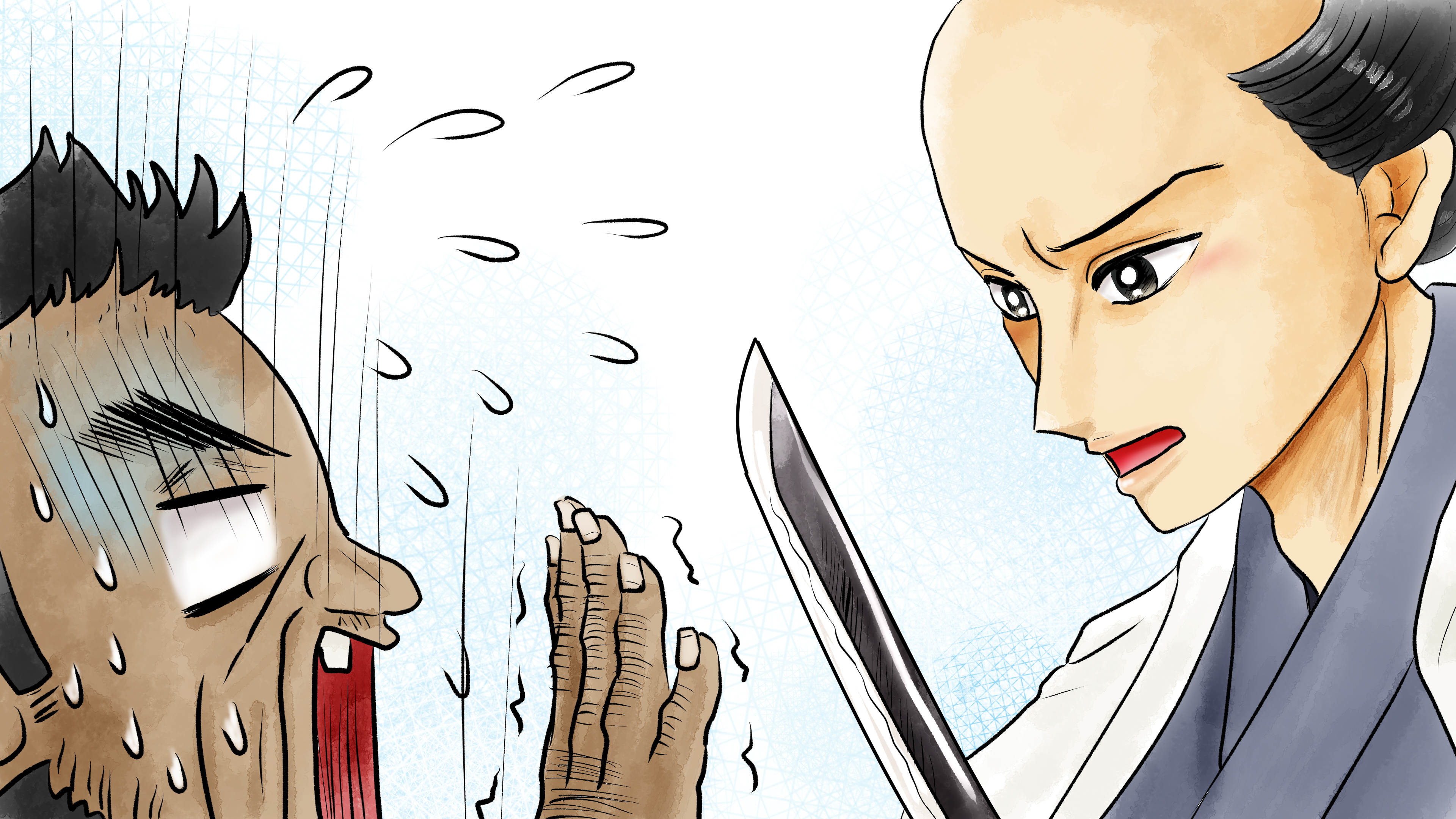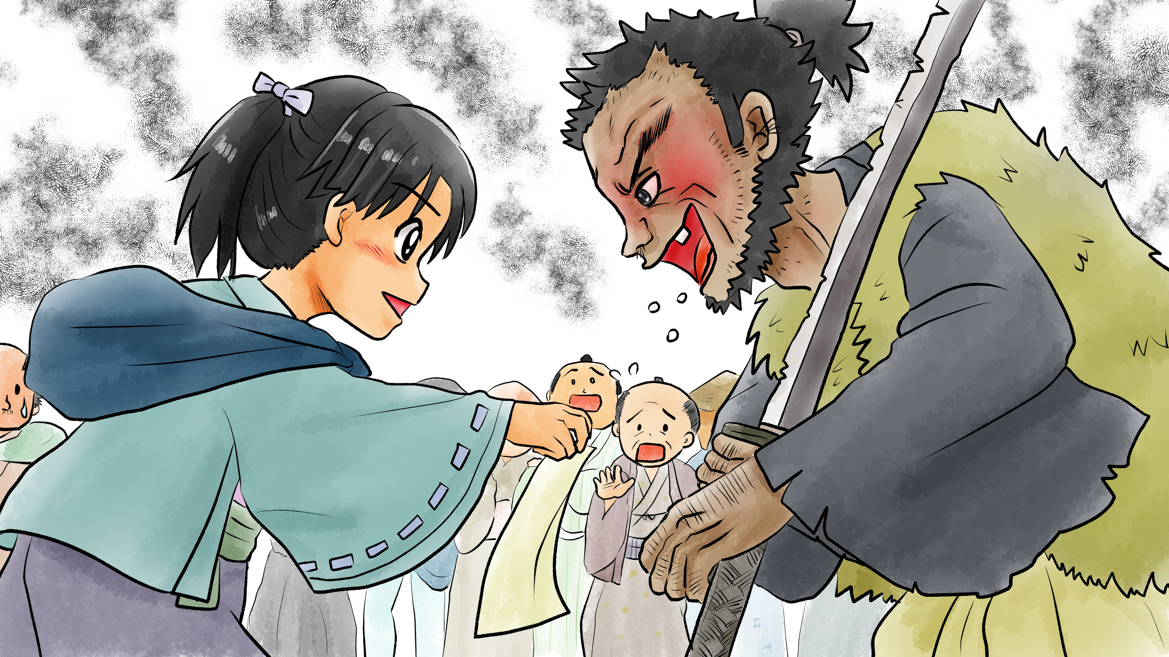 浪人はニタニタ笑いながら、刀を高くふり上げました。