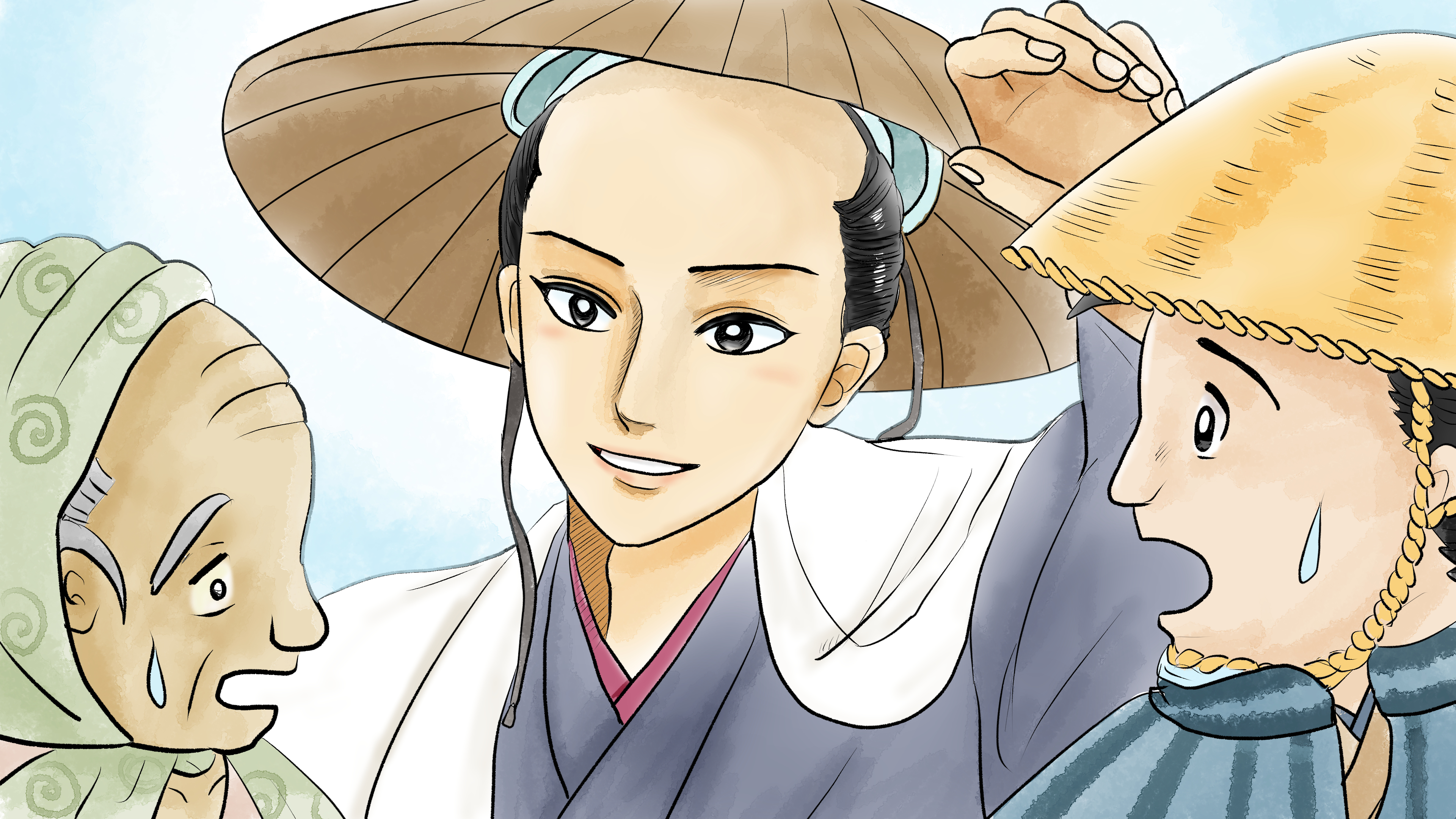 ある日、彦一と庄屋(しょうや)さんが、茶店の前にさしかかると、