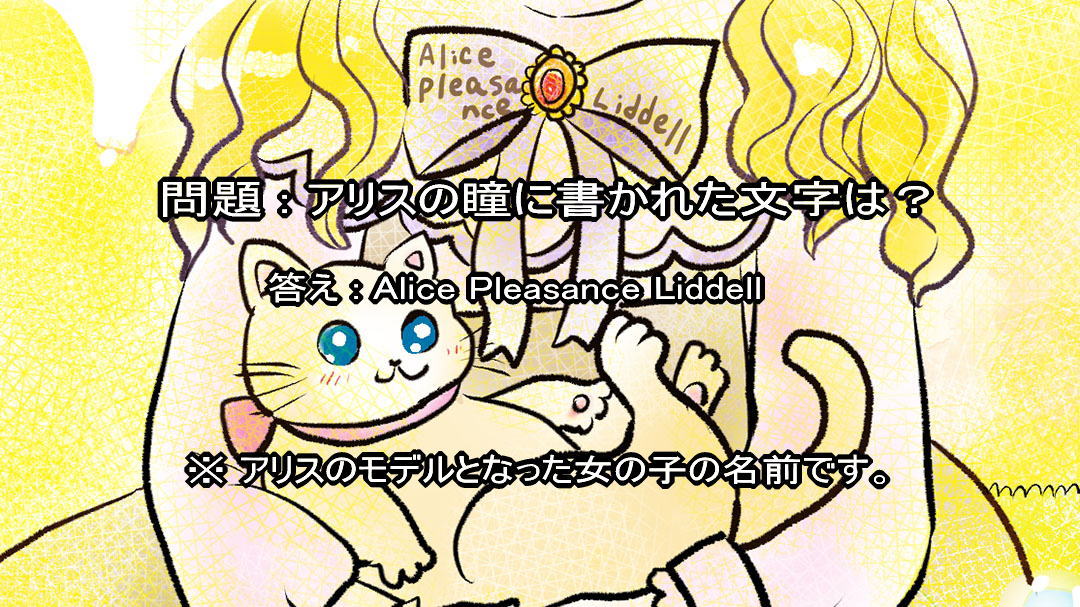 「ダイナを抱いているアリスのリボンに書かれている物は?」