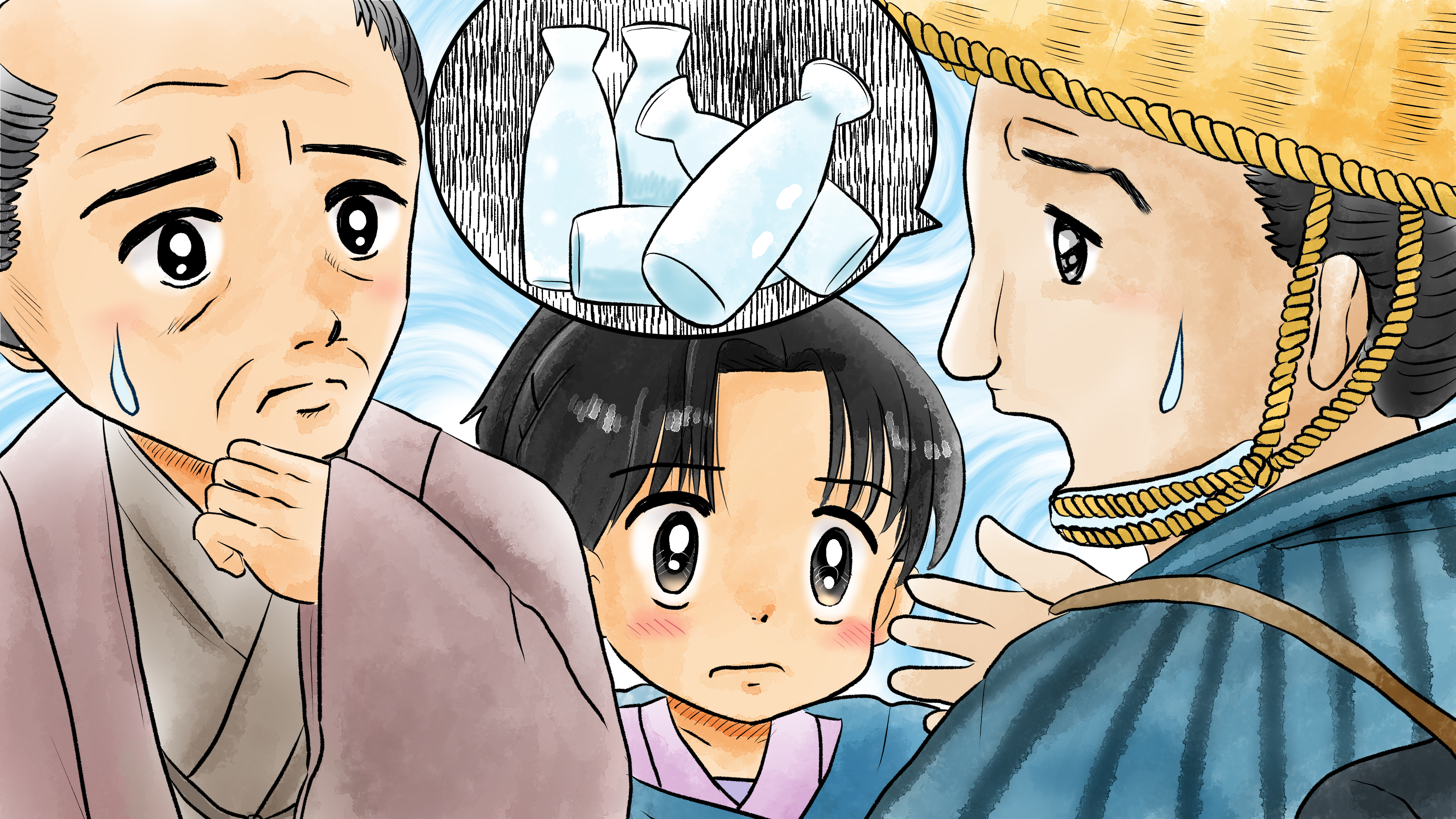 ある日、彦一と庄屋(しょうや)さんが、茶店の前にさしかかると、