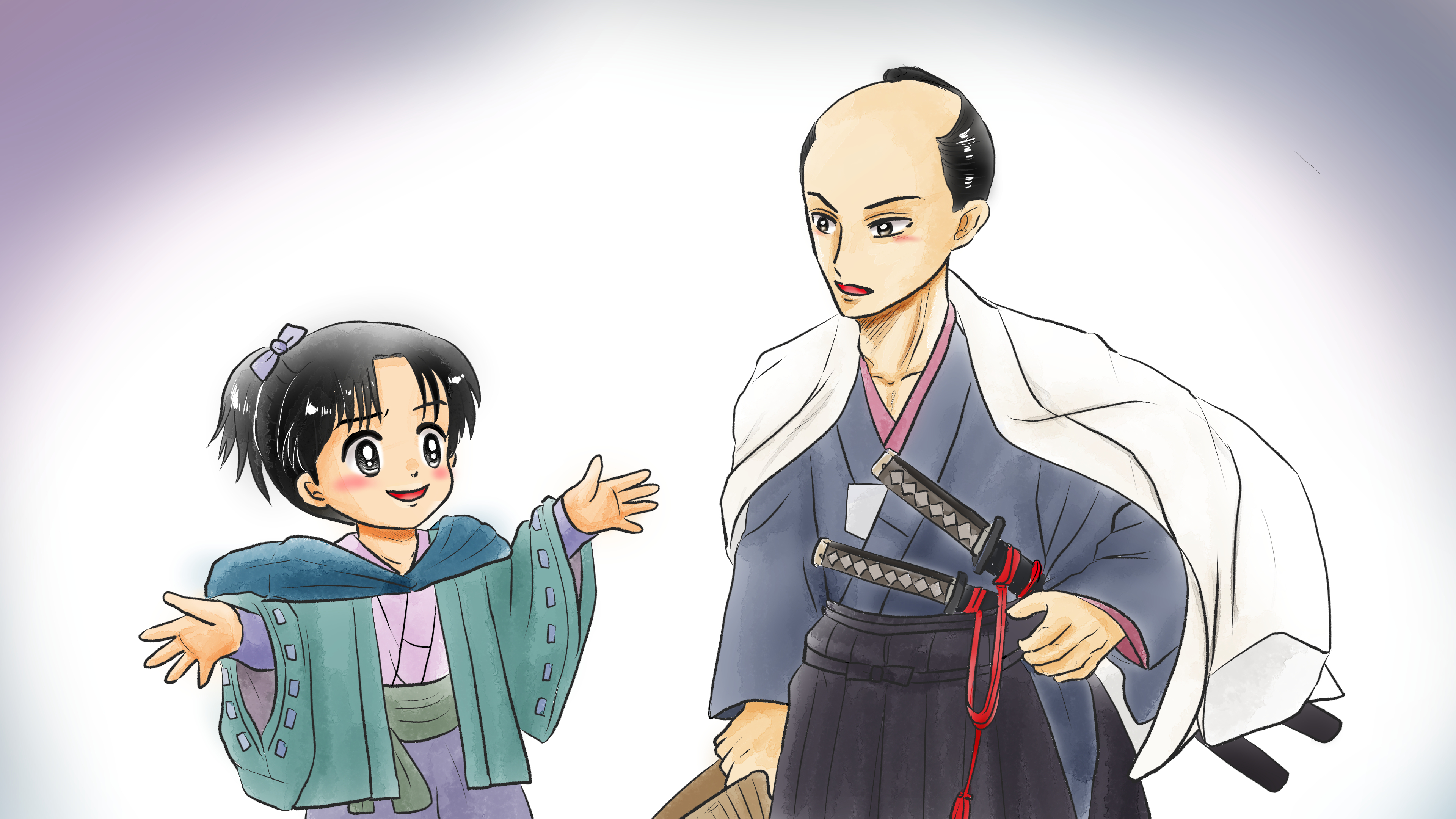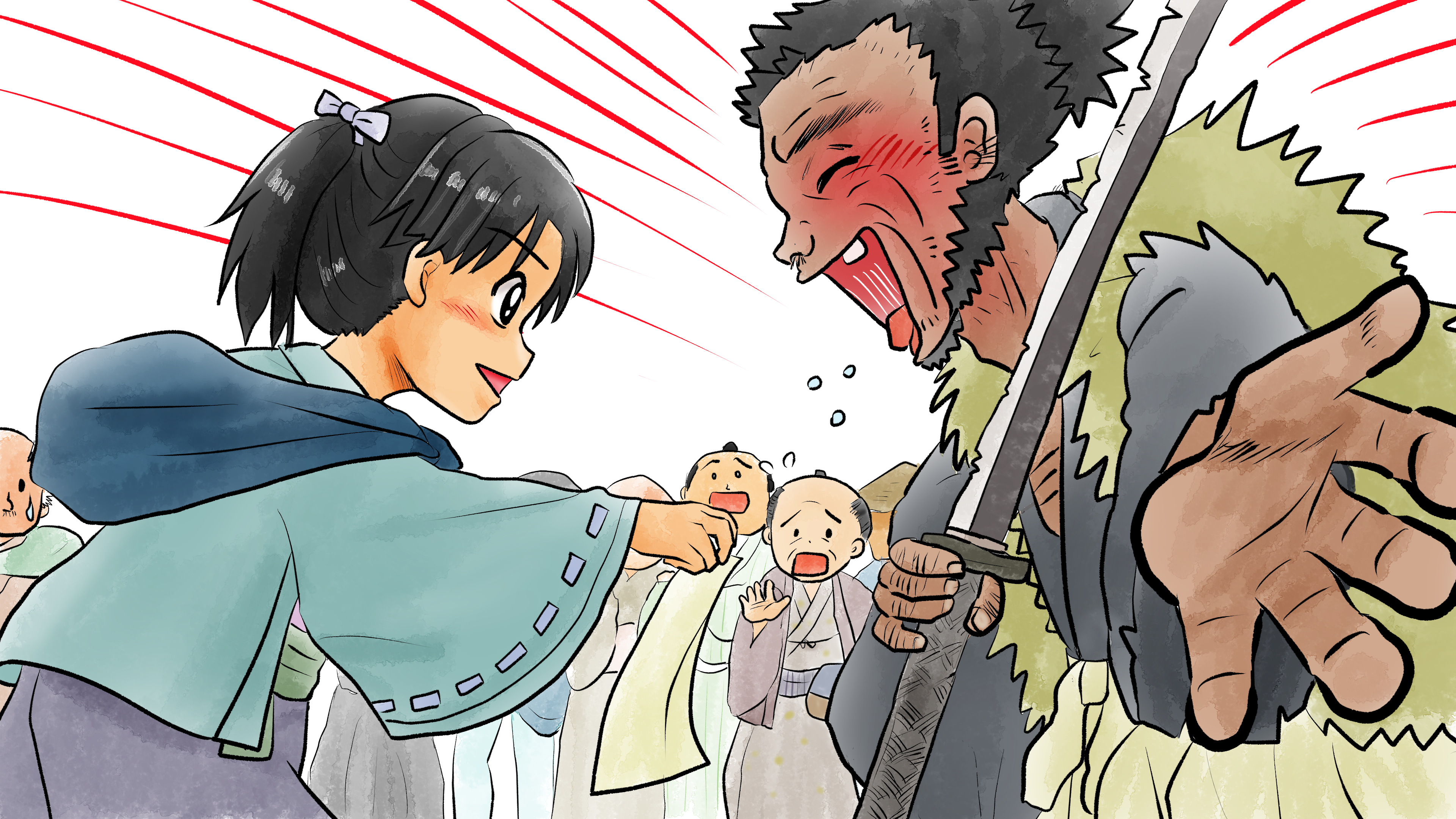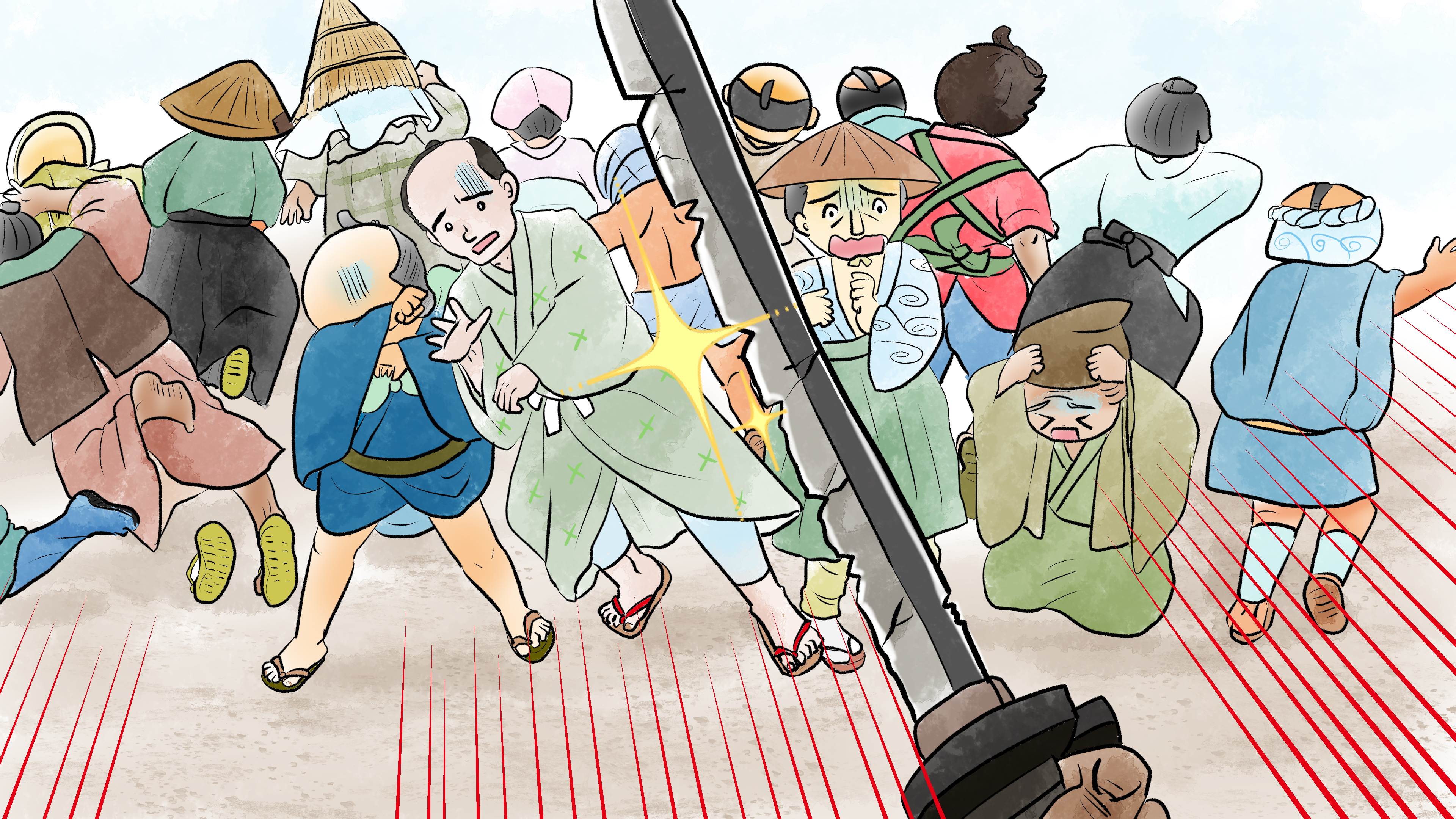 浪人はニタニタ笑いながら、刀を高くふり上げました。