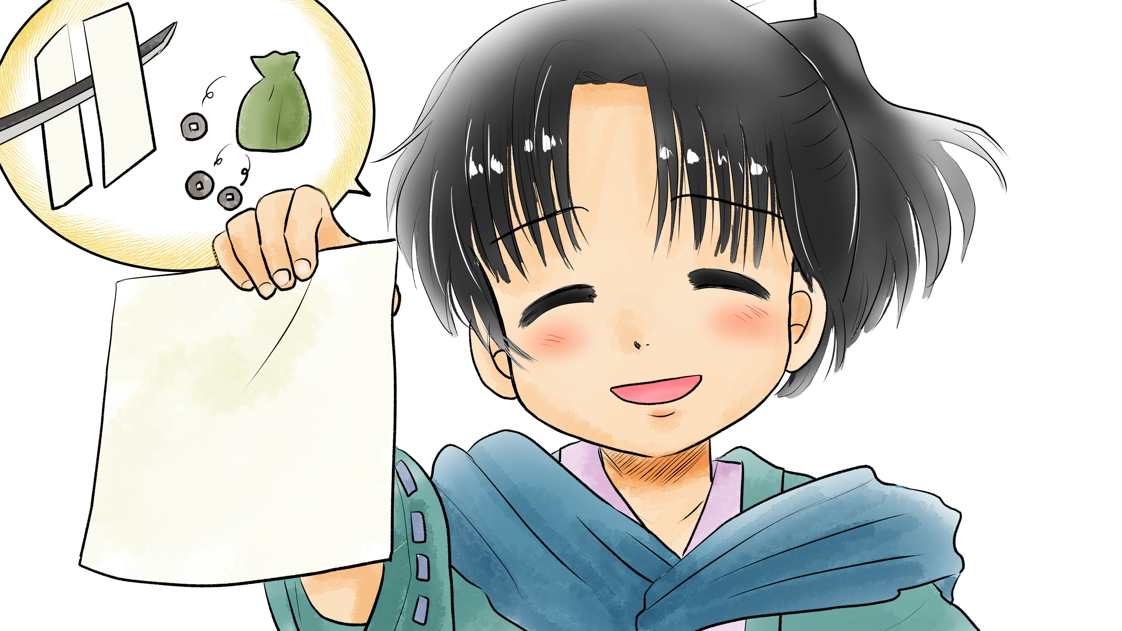 彦一はそう言うと、ふところから一枚の紙を取り出して、浪人の目の前に広げました。