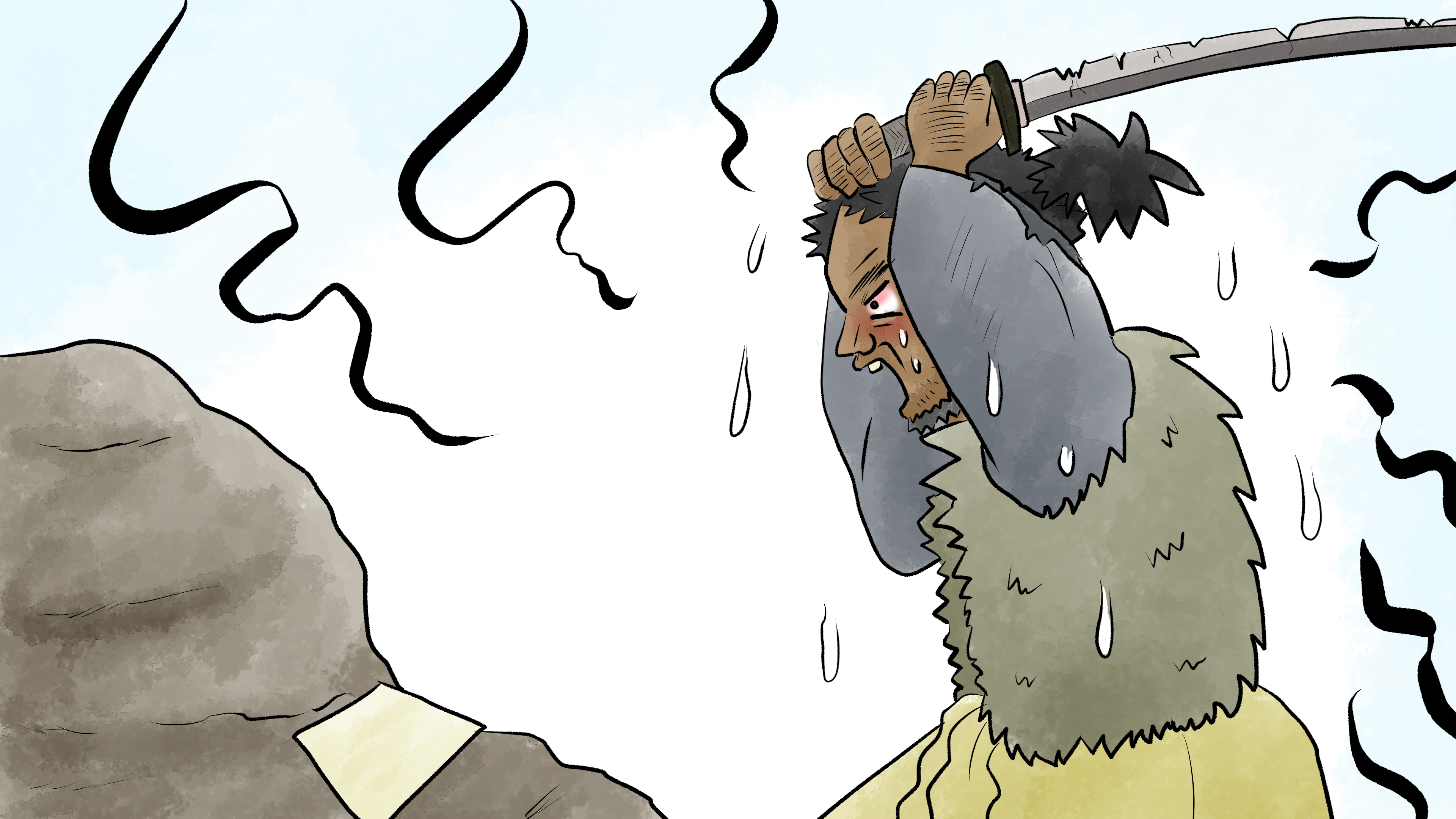 浪人 : 「わしは大岩に置かれた紙を一刀両断してやったわ」