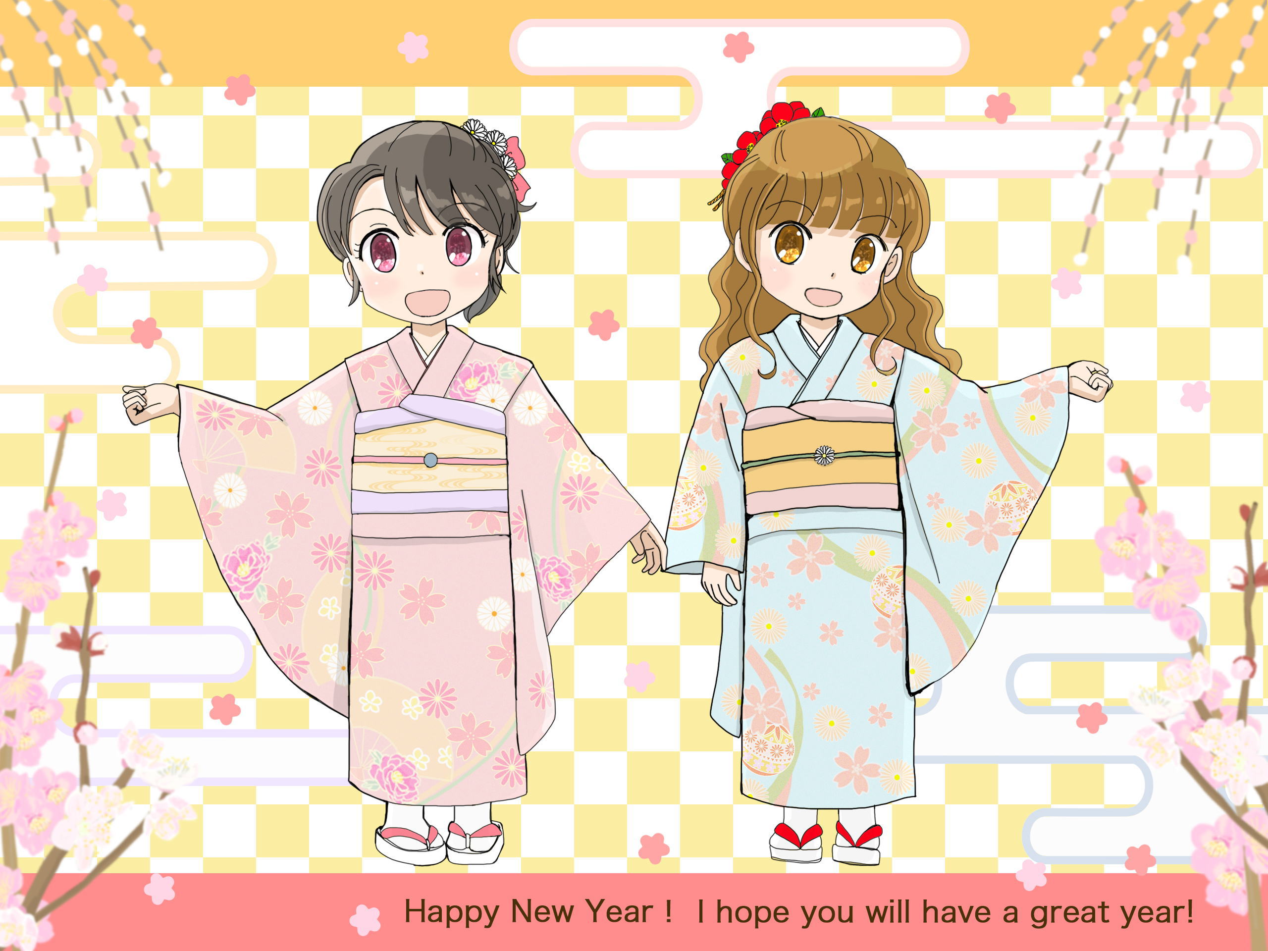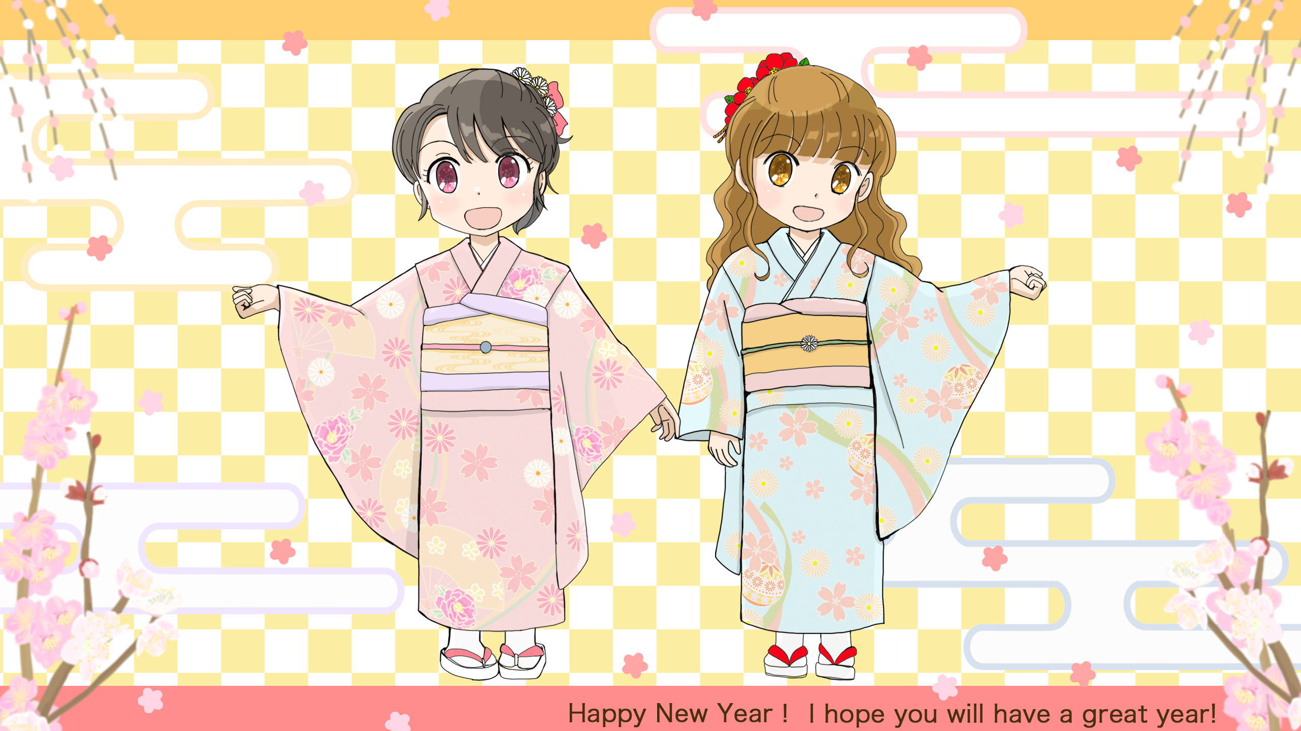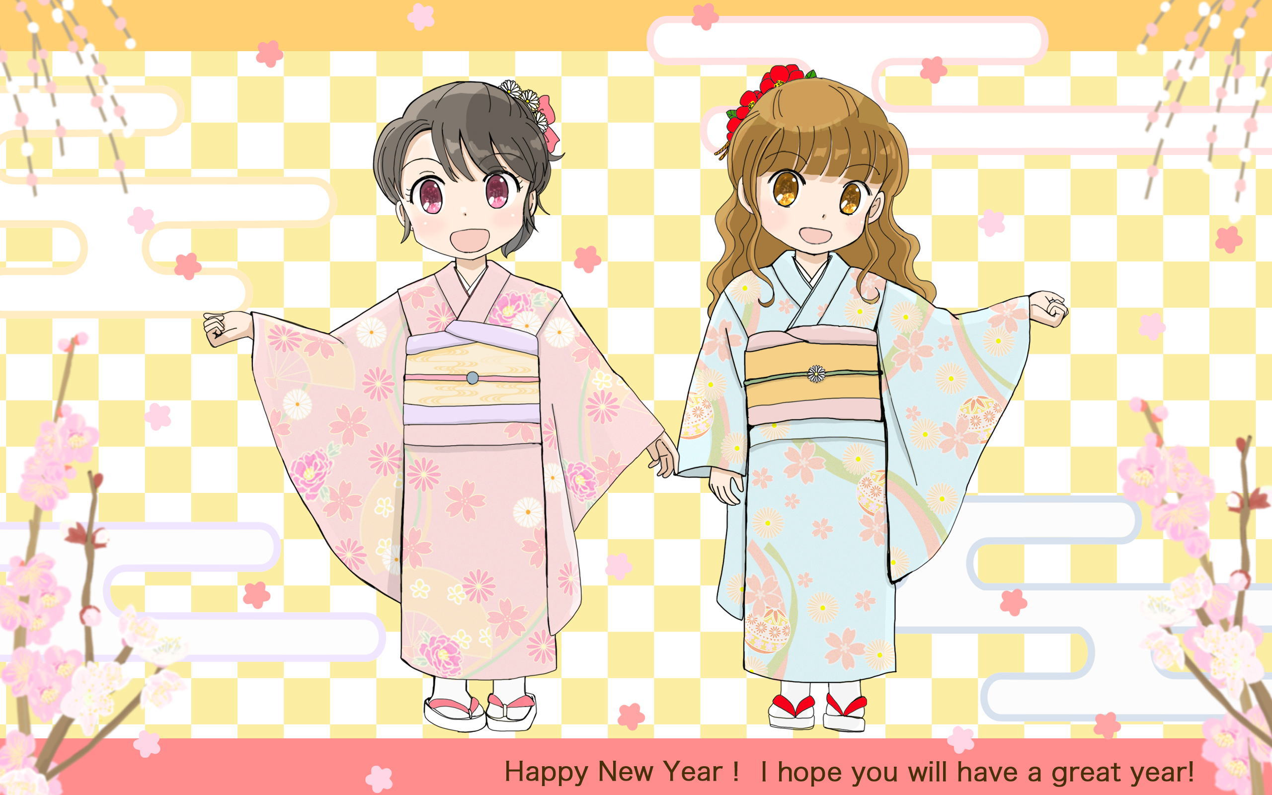 初詣に一緒に着物で行こうということになったあかりと優愛。