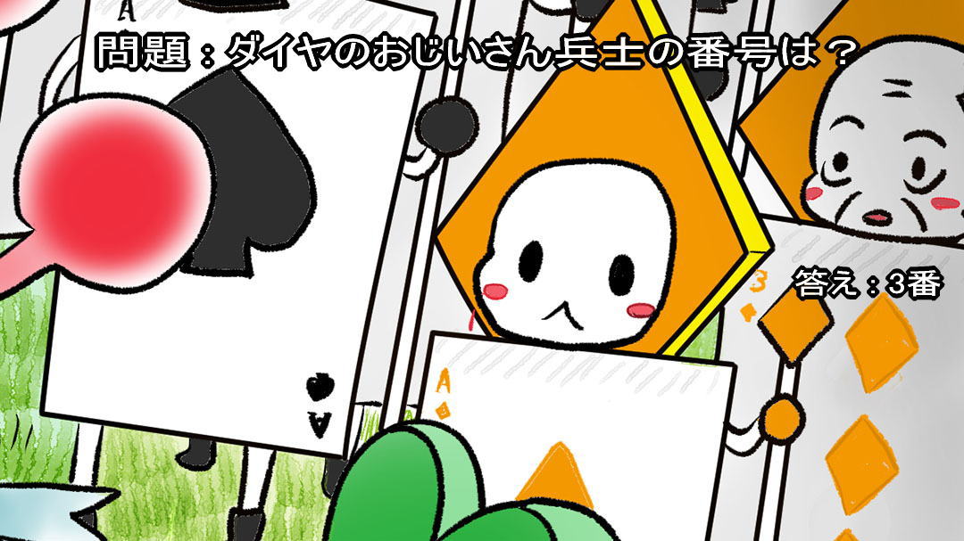 クラブの3が、うやうやしく片ひざをついて答えました。