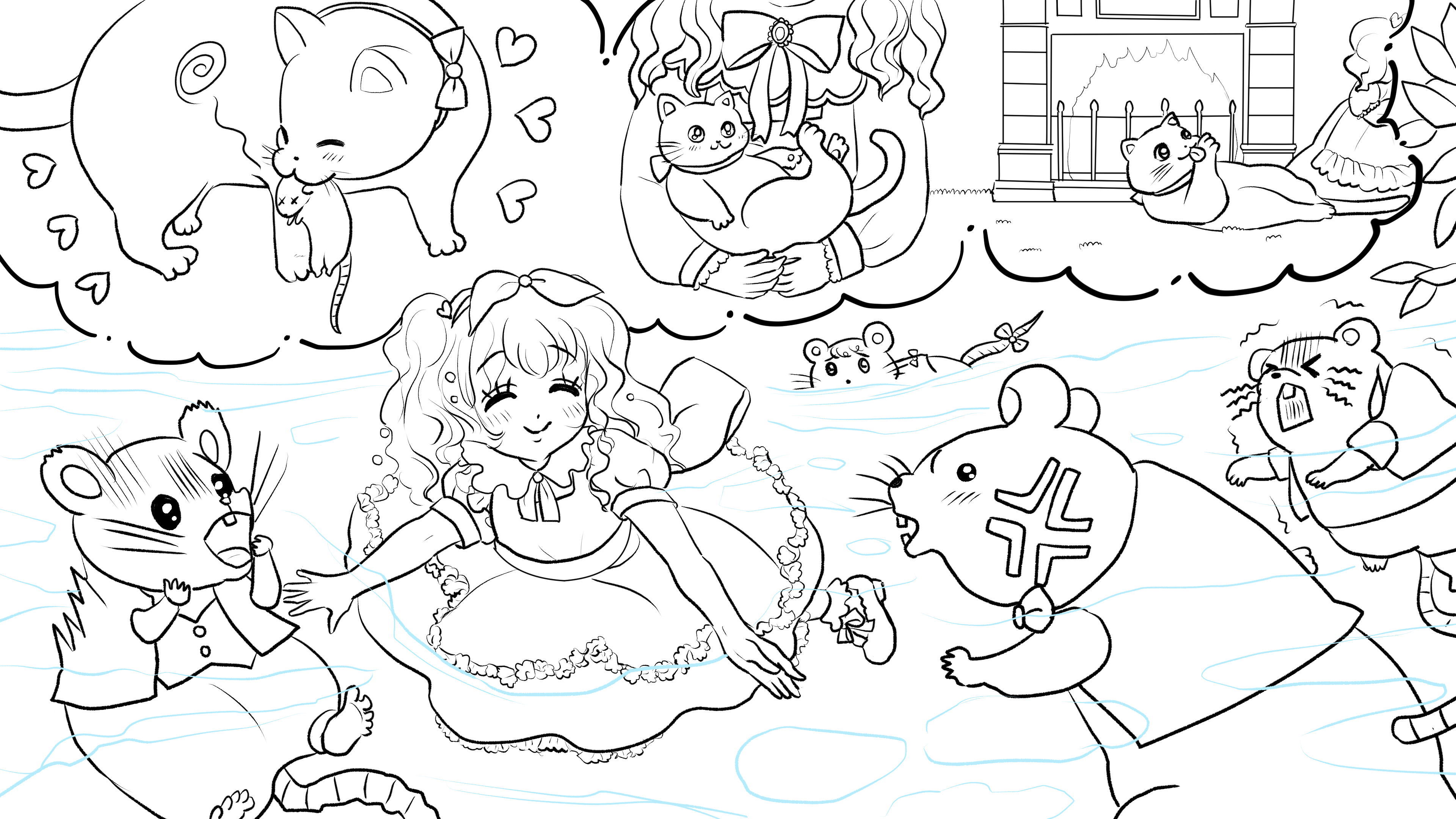 「あっ、ごめんなさい。あなたたちネズミは、ネコが大きらいだったわね。うっかりしてたわ」