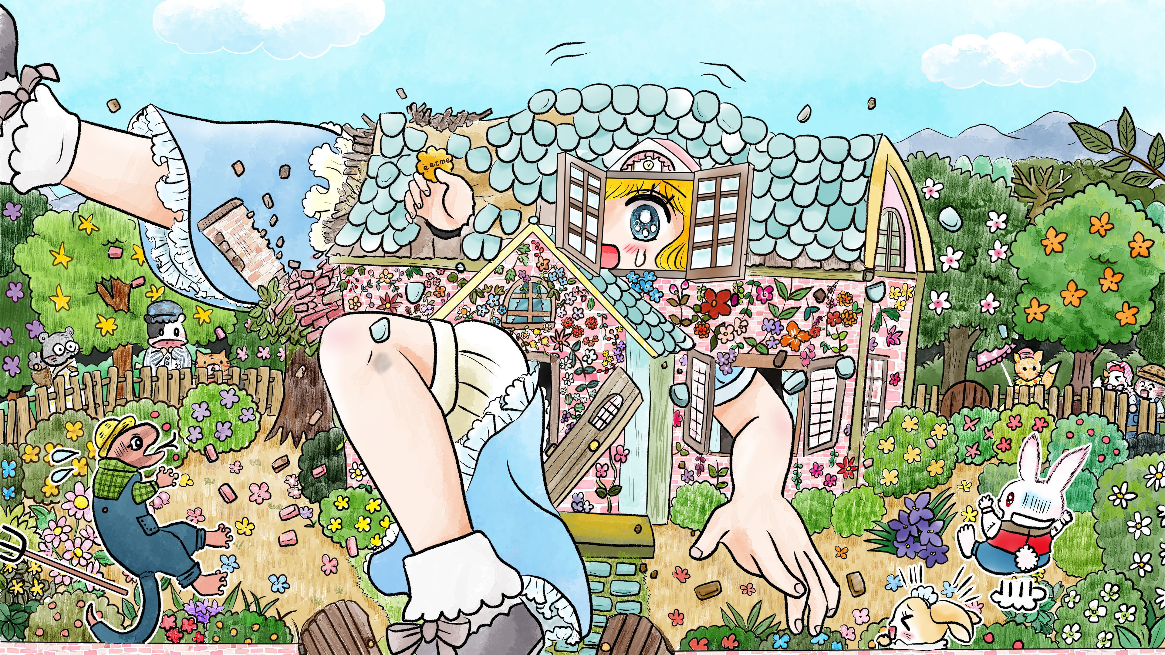 内側では大きくなったアリスのひじがドアを押しているので、いくら開けようとしてもびくともしません。