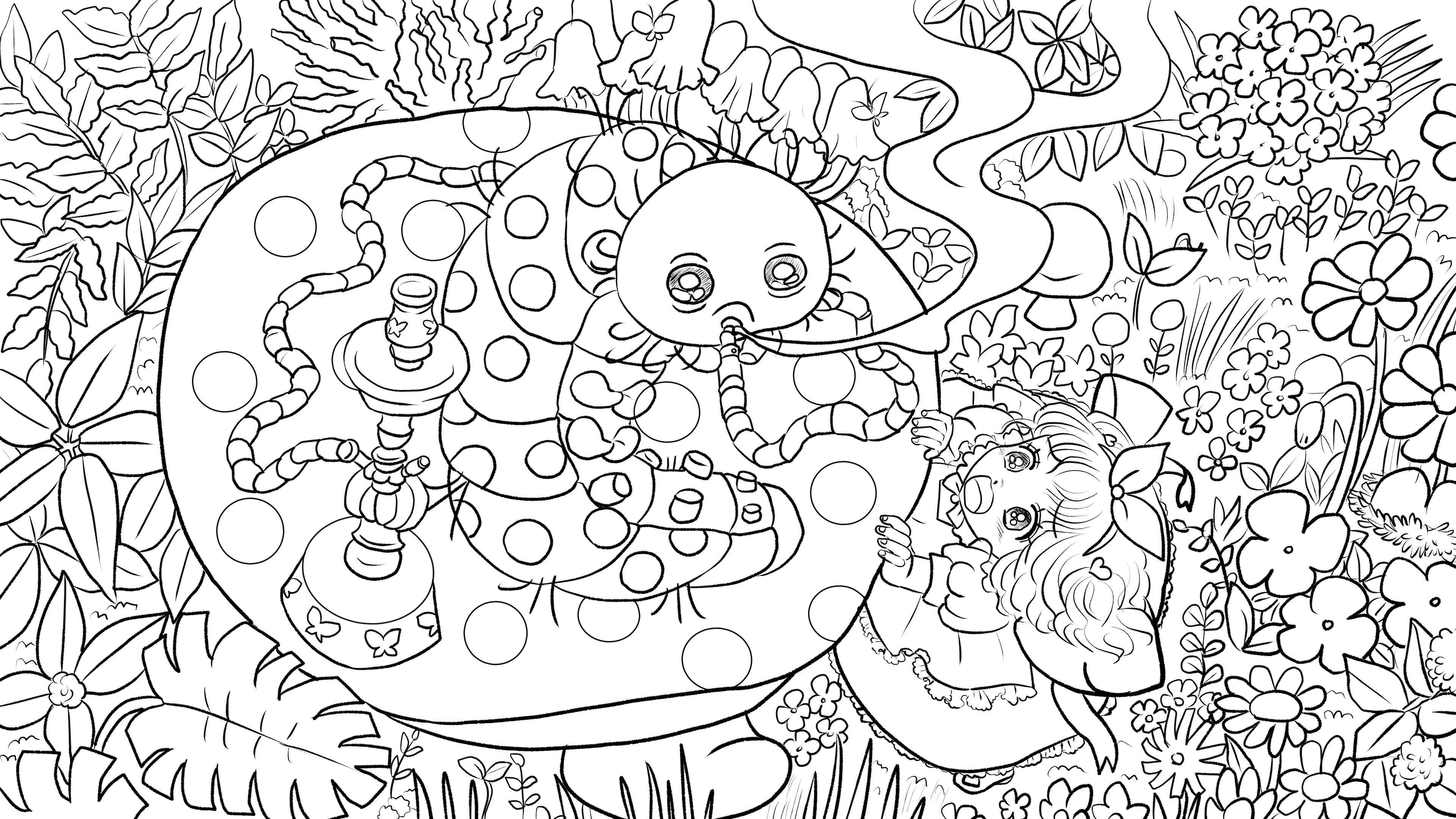 すると毛虫はしばらくの間、何も言わずに水キセルをプカリプカリとふかしていました。