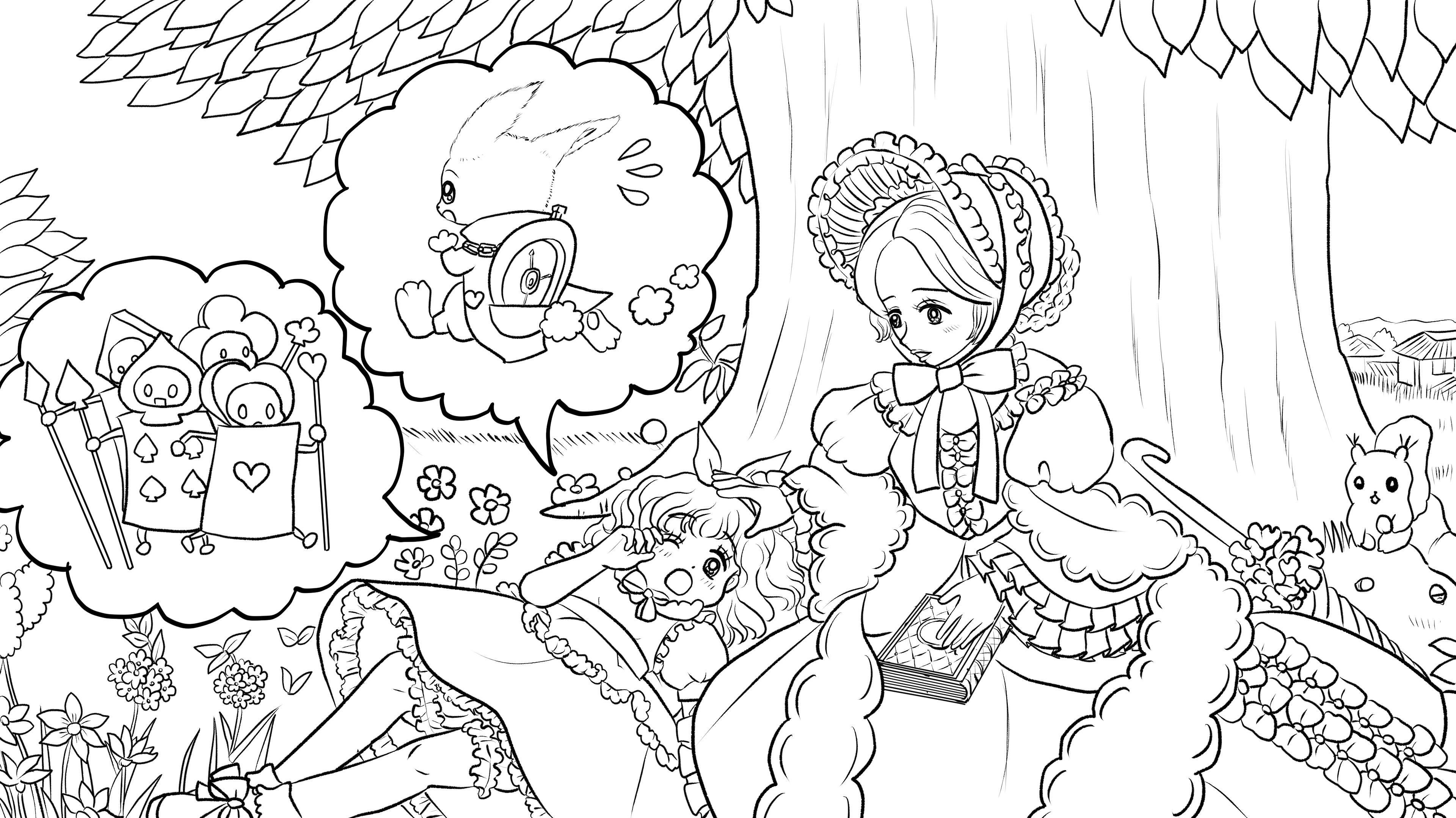 お姉さんはアリスが去ったあと、沈んでいく夕日を見ながらアリスの不思議な冒険話を思い出しました。