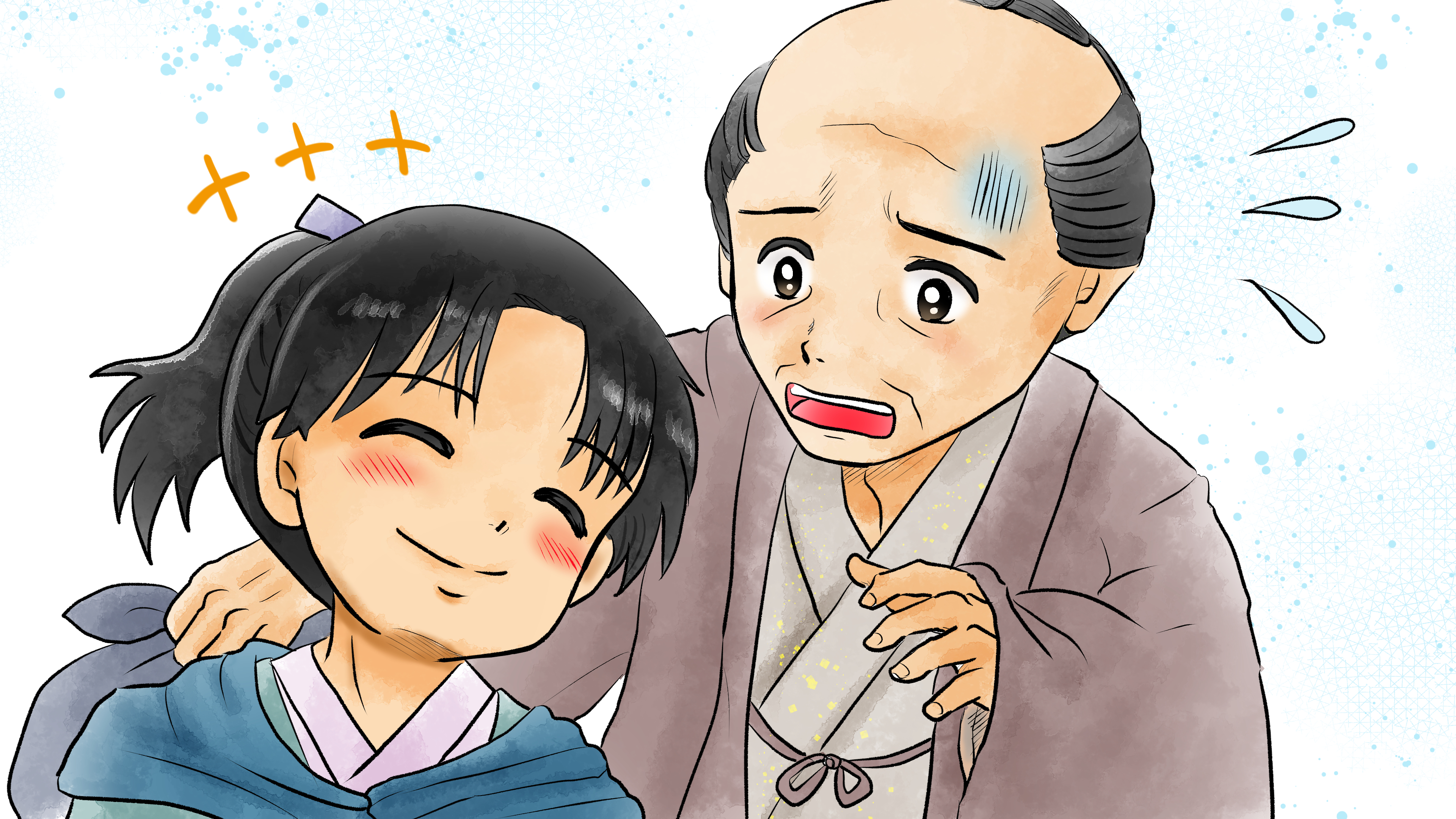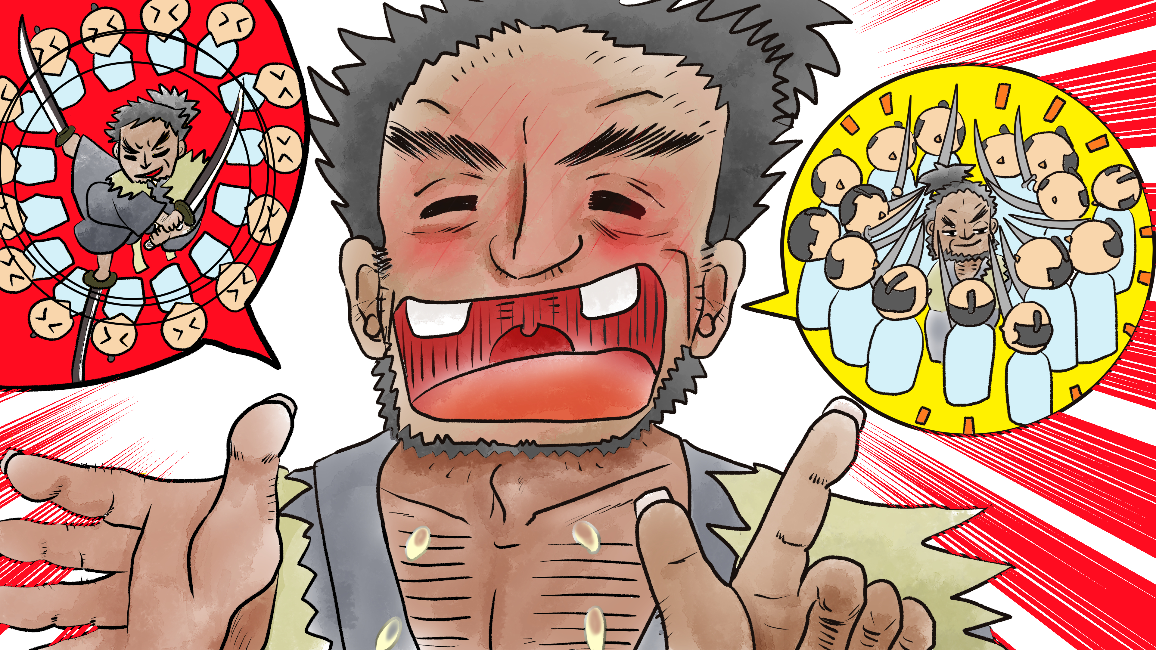 浪人はニタニタ笑いながら、刀を高くふり上げました。