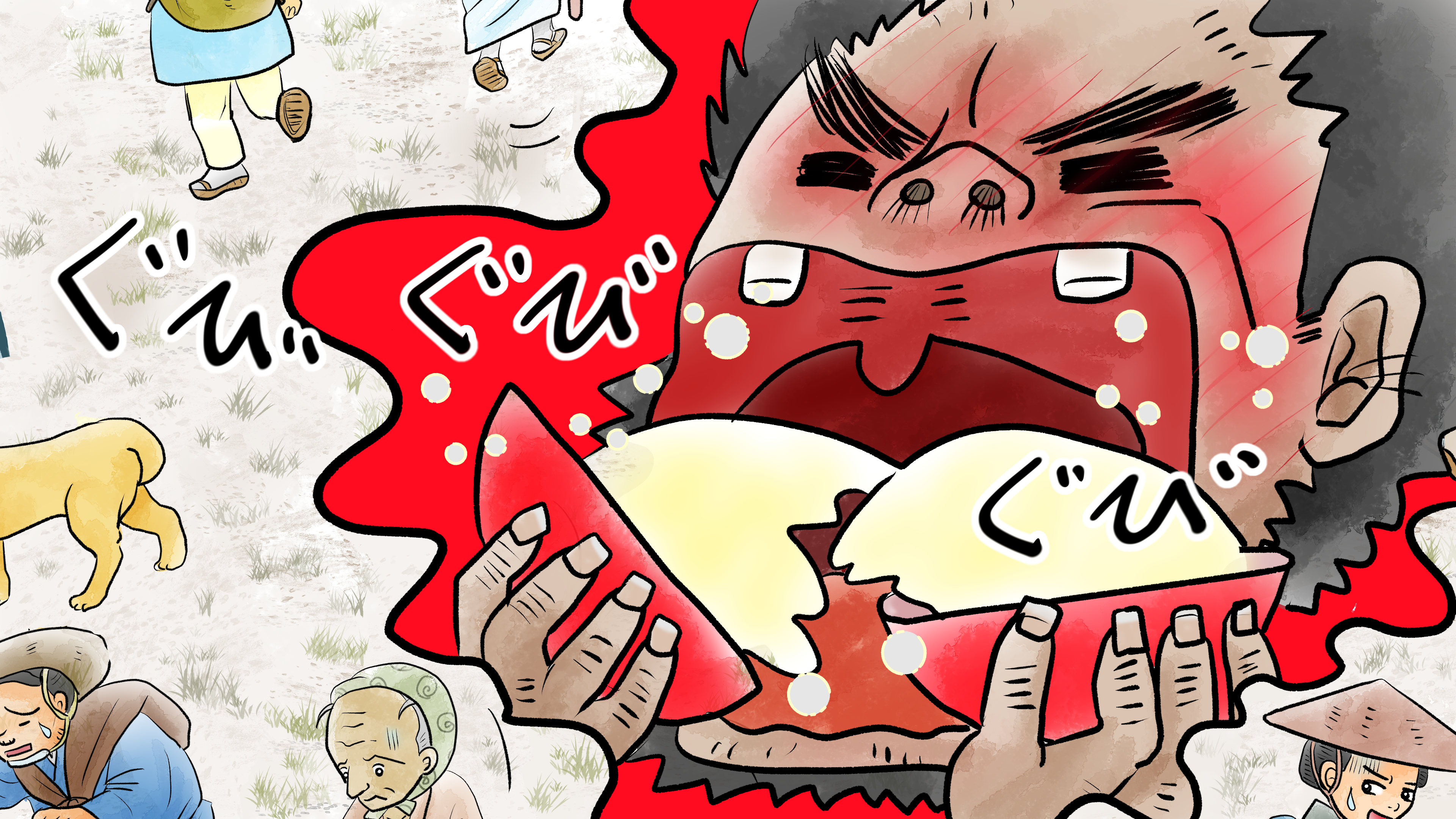 ある日、彦一と庄屋(しょうや)さんが、茶店の前にさしかかると、